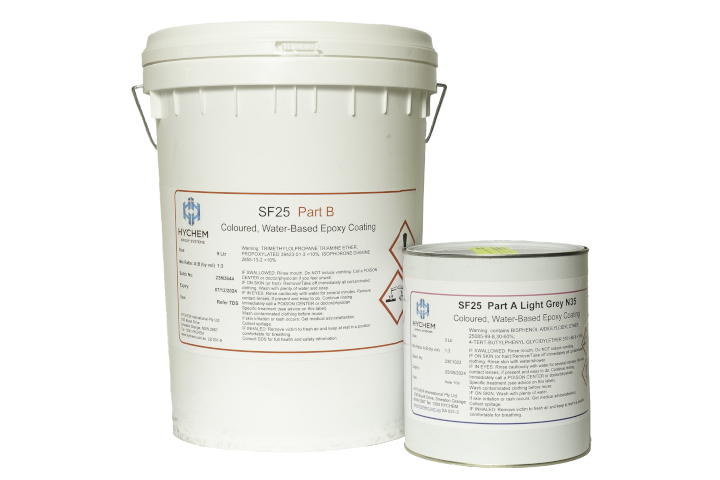 HYCHEM SF25 is a pigmented, two-component, economical, low solids water-based epoxy coating with low odour and low volatile organic compound emission. It is hard wearing, is waterproof and resistant to oils and solvents making it particularly suitable for use in schools, colleges, corrective services and community buildings, commercial car parks and domestic garages, food processing, automotive centres, pharmaceutical manufacturing, shopping centres, factories and warehouses, back of house areas, corridors, stock and plant rooms.